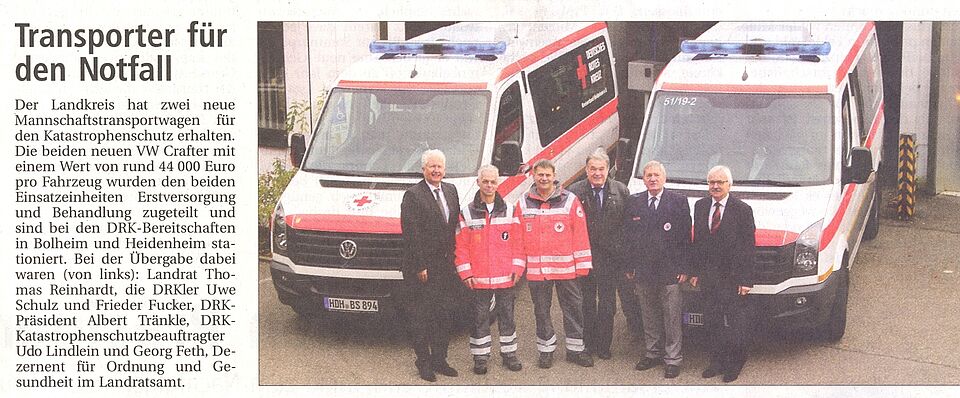 Der Landkreis hat zwei neue Manschaftstransportwagen für den Katastrophenschutz erhalten. (Heidenheimer Zeitung v. 28.11.14)