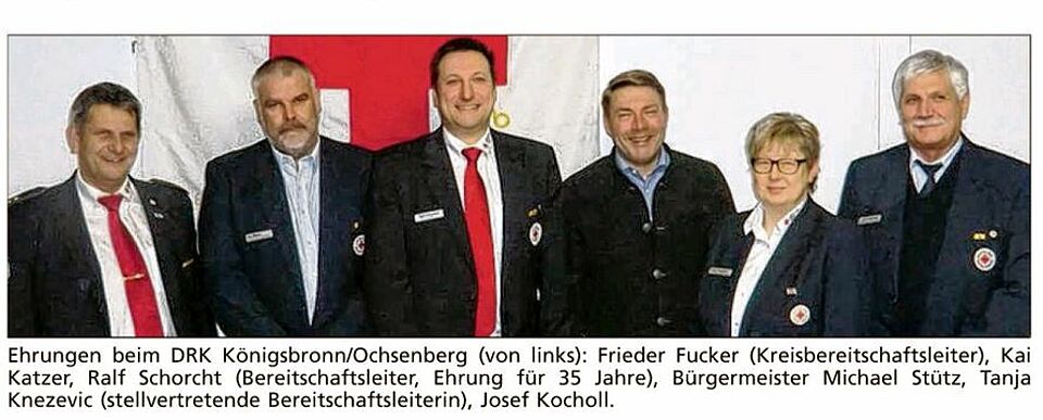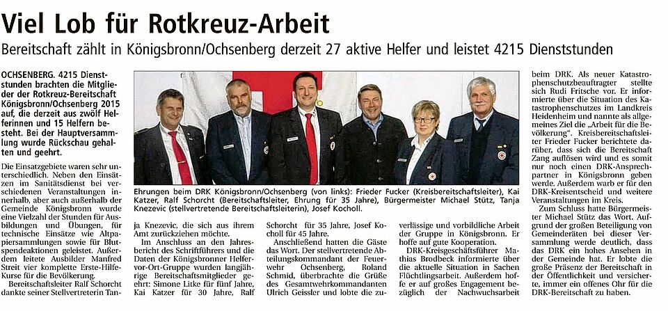 Bereitschaft zählt in Königsbronn/Ochsenberg derzeit 27 aktive Helfer und leistet 4215 Dienststunden (Heidenheimer Zeitung v. 26.01.16).