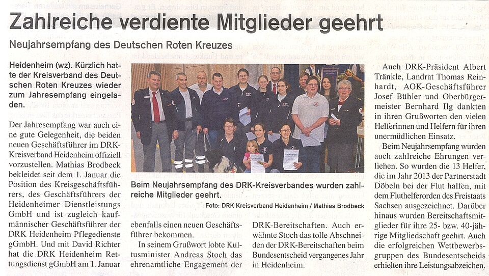 Neujahrsempfang des Deutschen Roten Kreuzes (Wochenzeitung v. 31.01.15)