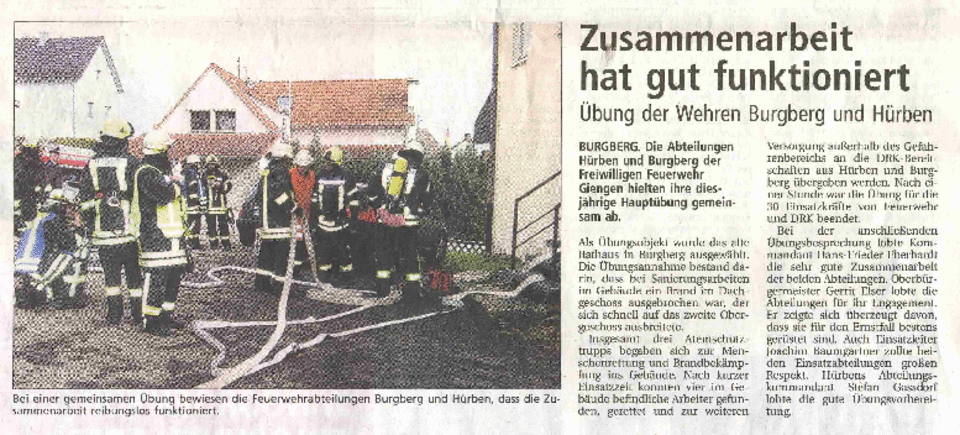 Übung der Wehren Burgberg und Hürben (Heidenheimer Zeitung vom 24.10.14)