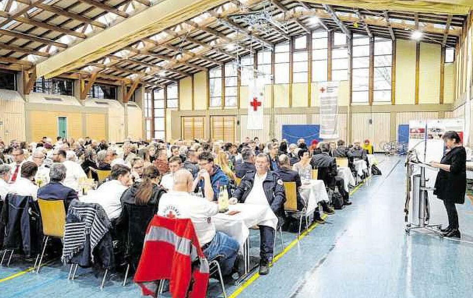 Polta hob ebenfalls den Wert des ehrenamtlichen Engagements hervor, etwa bei den Helfern vor Ort, ,,einem entscheidenden Glied in der Rettungskette", so der Landrat. Auch im Bereich Pflege schrieb Polta dem DRK den Status als „unverzichtbarer Partner" zu.