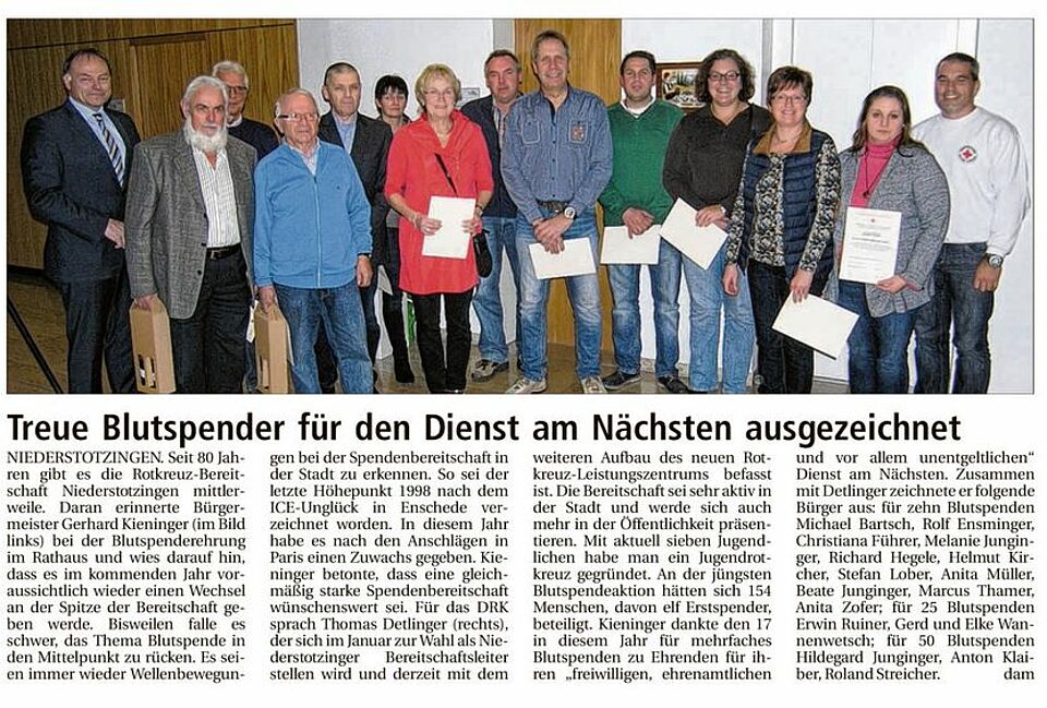 Treue Blutspender für den Dienst am Nächsten ausgezeichnet